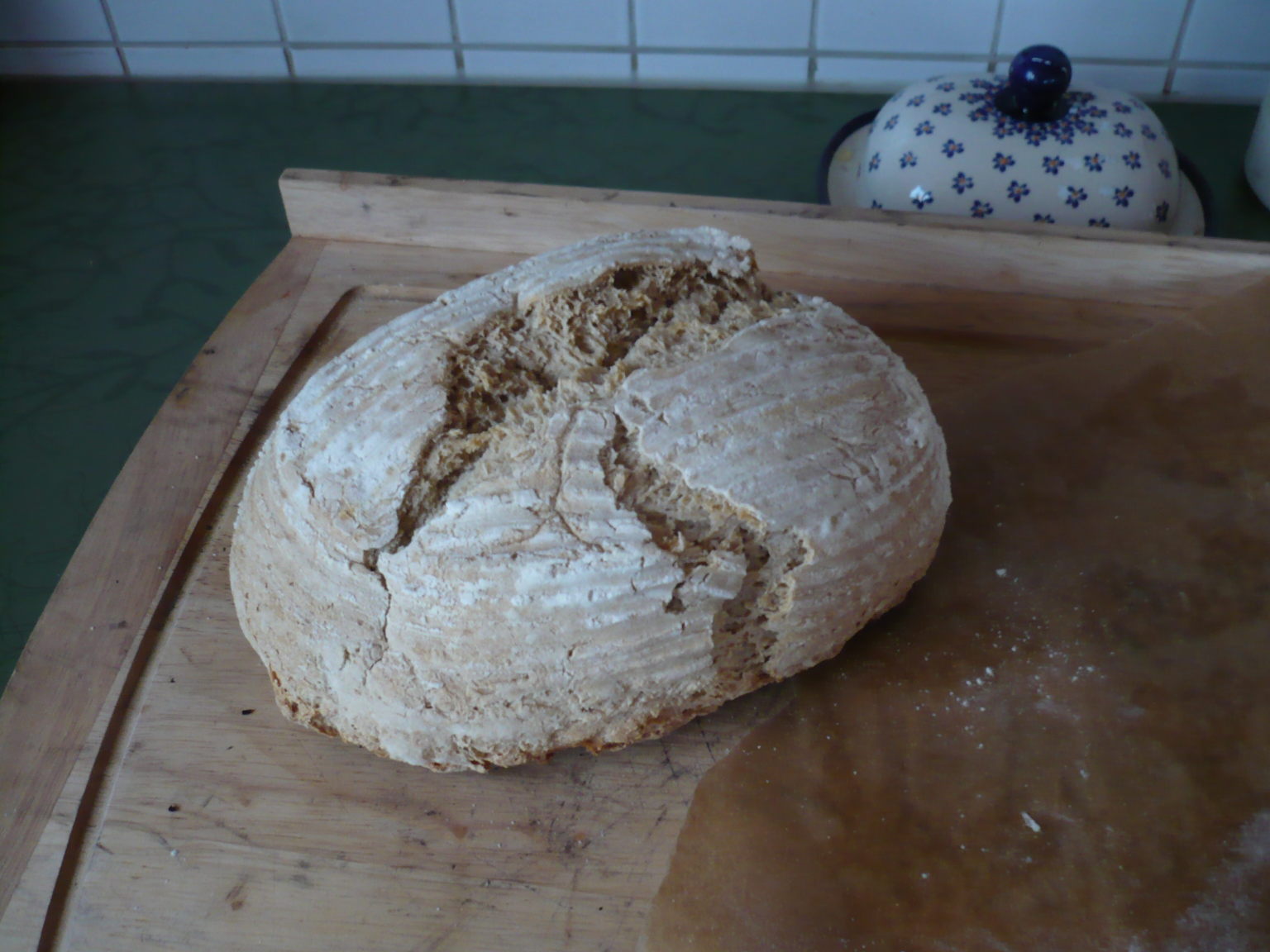 Ich habe gestern mein erstes Sauerteigbrot gebacken. Nach Anleitung von PÖT habe ich mir den Sauerteig über eine Woche lang gezogen und siehe da: es funktioniert. Es ist mit Weizenteig und ohne Gewürze gebacken. Damit beginne ich nun erst zu experimentieren. Es ist unten recht dunkel geworden, ich denke, die Oberhitze war zu gering, und das Brot hätte dann nur 10min weniger im Ofen bleiben können. Für den ersten Versuch bin ich aber recht zufrieden.