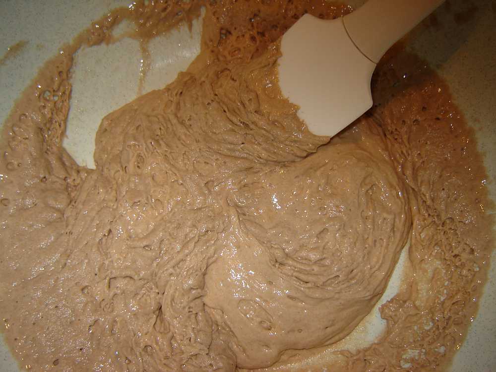 200 g Roggenmehl (Typ 1150 o. ä.) und 200 ml warmes Wasser (40° C) werden in den Ansatz der Stufen 1 und 2 eingerührt und nochmals für 24 Stunden bei