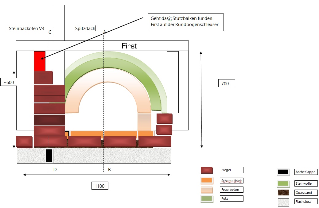 Ist mir zu gewaltig. Ich nehme nun eine Reihe Schamottsteine raus und habe dann ein machbares Ausmass.