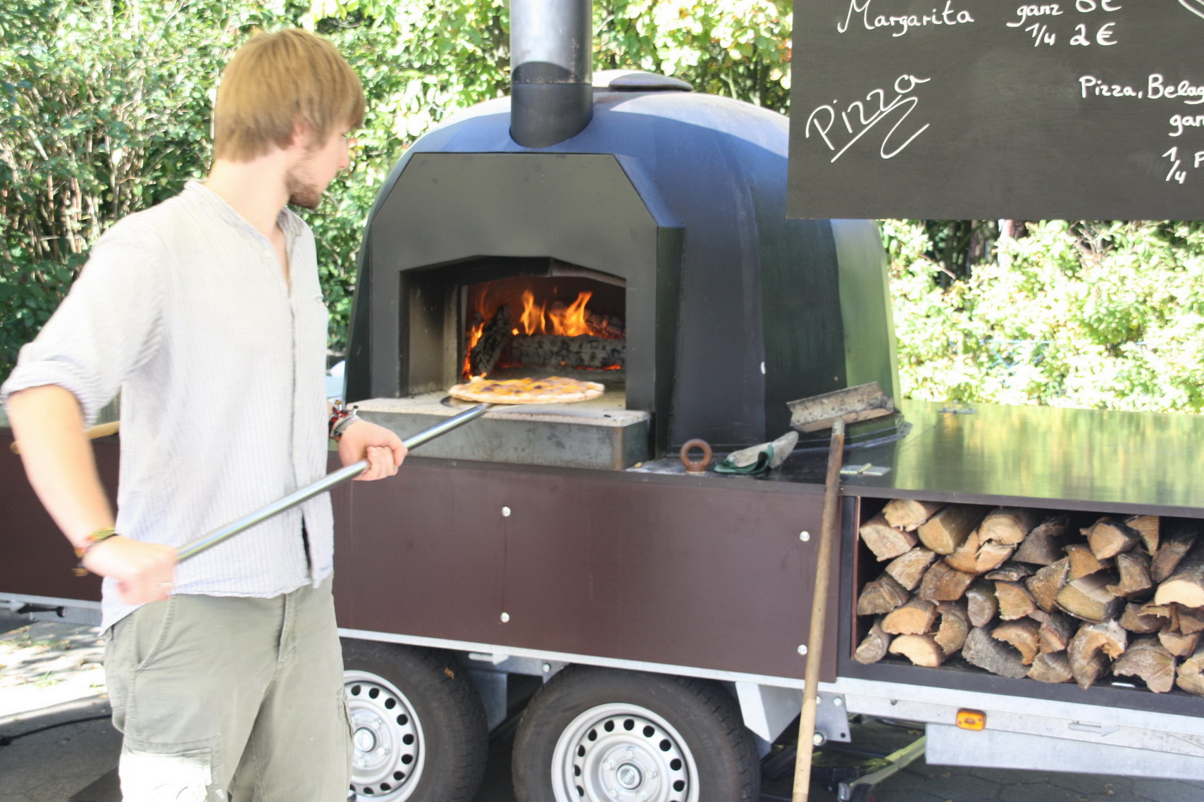 Ich habe mir vor ca. 3 Jahren einen mobilen SBO (Pizzaofen) konstruiert und gebaut. Seit 2 Jahren fahre ich damit auf Straßen- und andere Feste und Events und backe und verkaufe frische Pizzen.