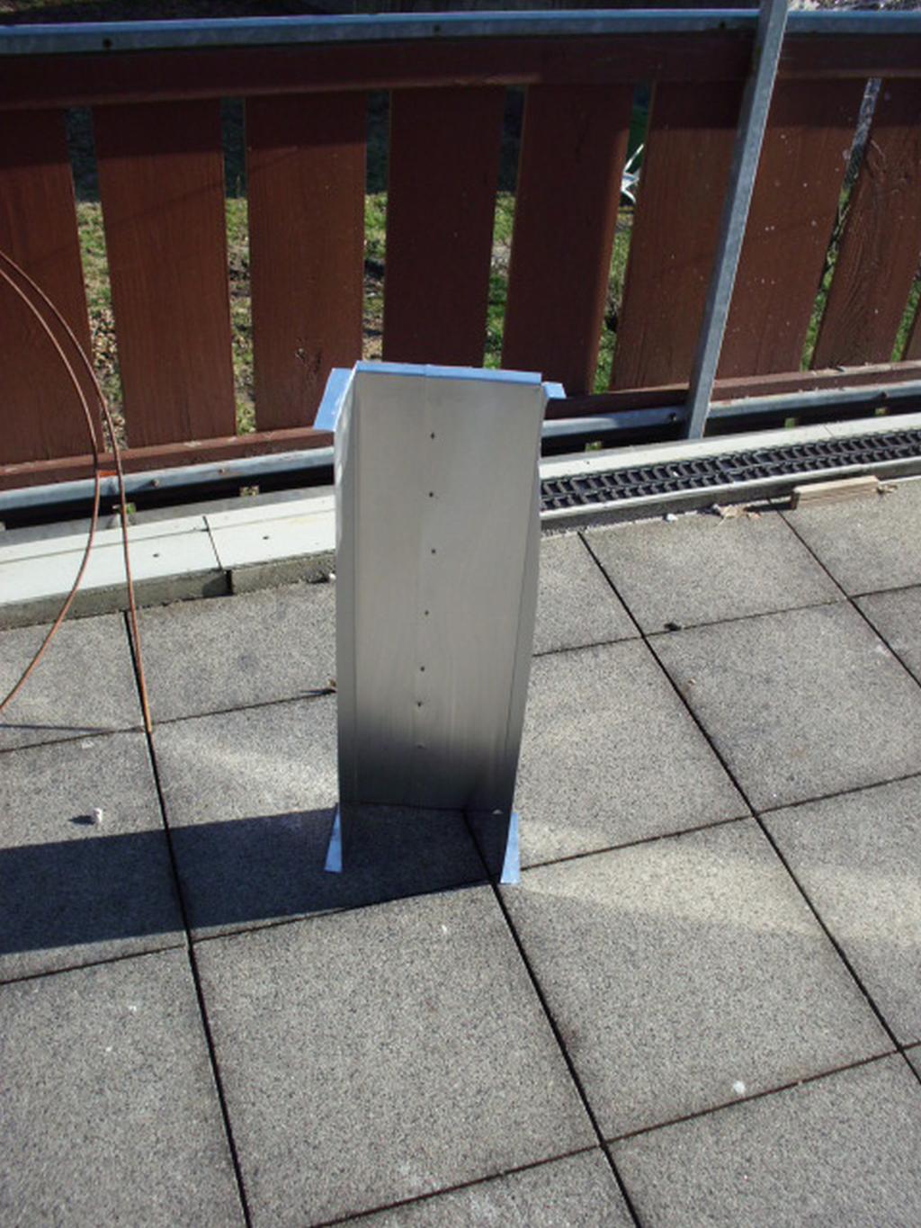 Am Schornstein angepasst und befestigt mit Nieten.