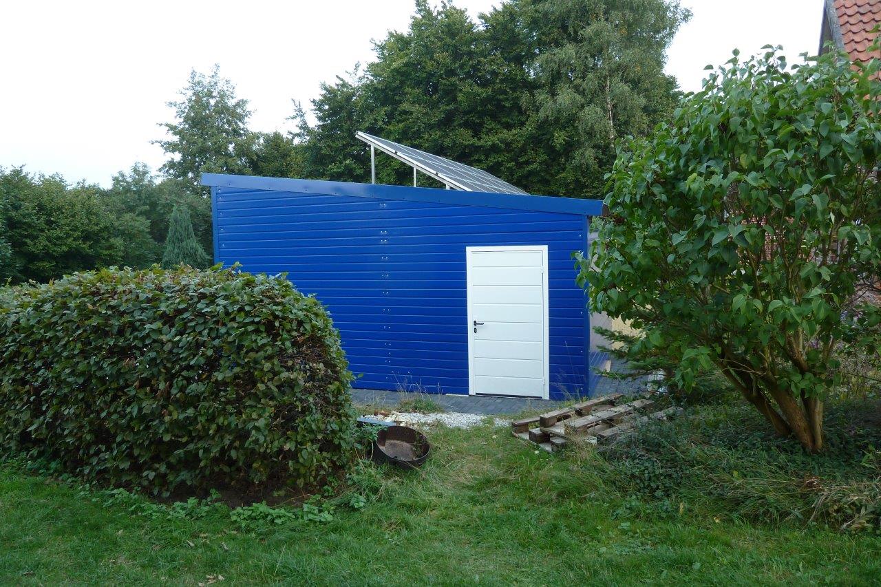 Die Solaranlagen waren mit dem Holzunterstand links (sieht man wegen dem Trampo nicht so gut) und dem Treckerunterstand (auf dem Bild noch nicht drauf) die Projekte der letzten Jahre